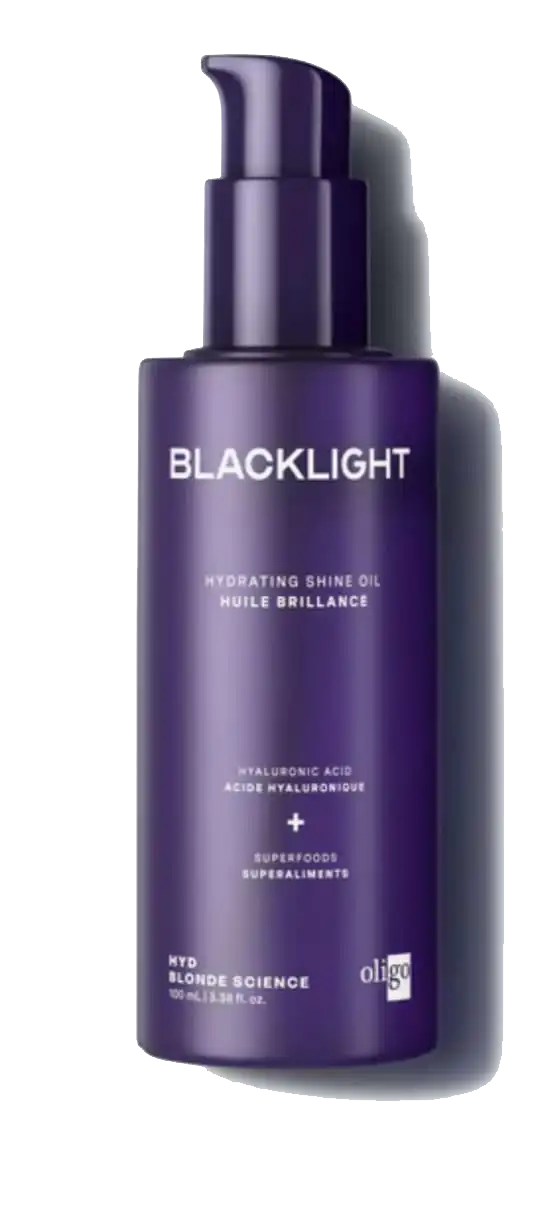 Blacklight Hydrating Shine Oil delivers lightweight hydration while boosting shine and smoothing frizz for beautiful blonde hair. This multi-benefit oil softens, tames flyaways, and leaves hair silky, smooth, and luminous.
